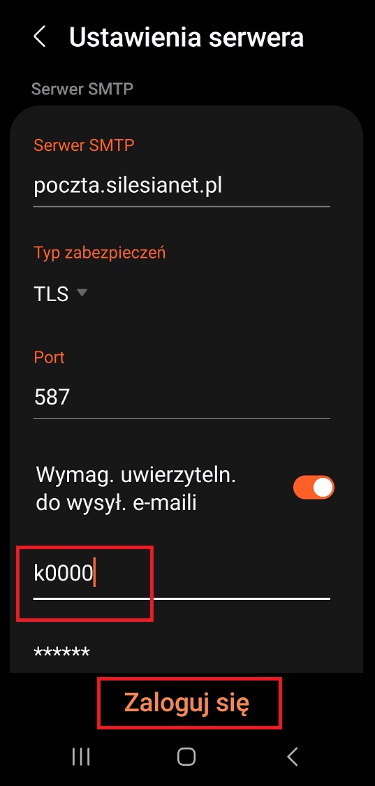 - Serwer poczty wychodzącej SMTP: poczta.silesianet.pl